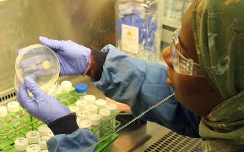 A scientist testing phages’ ability to infect and kill different bacteria